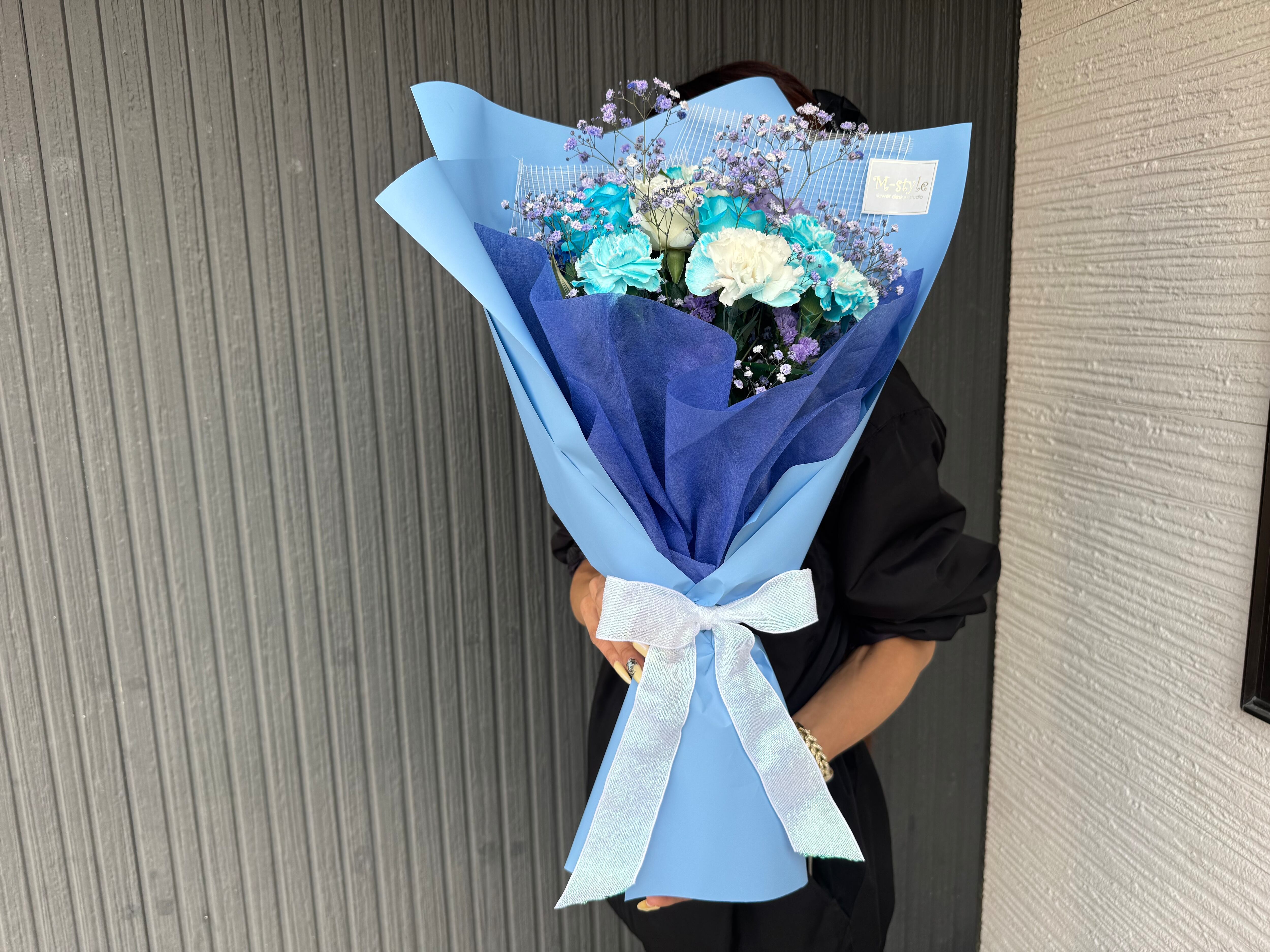 やさしく澄んだ色合いが織りなす、上品で爽やかな花束です。