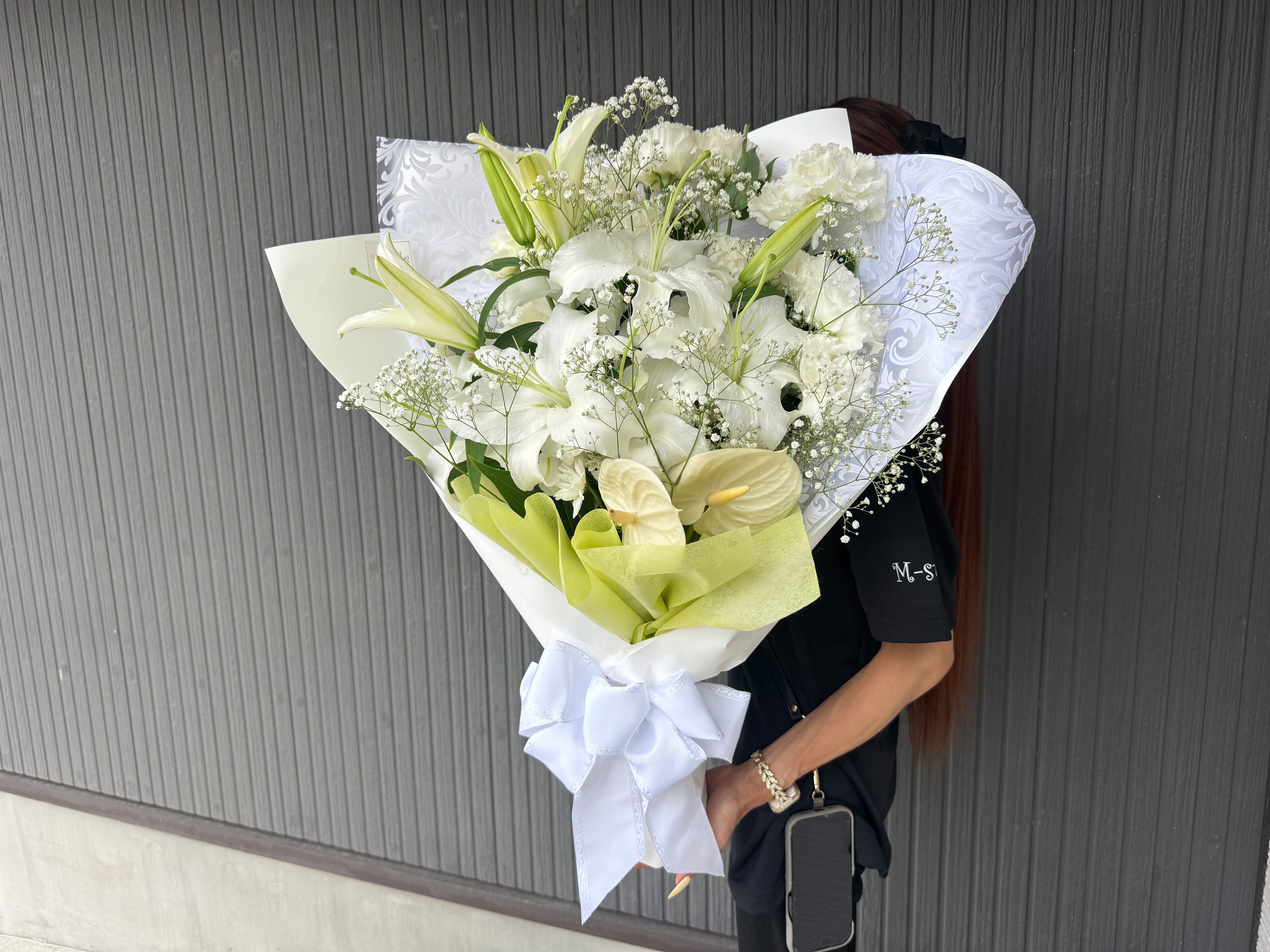 ユリ、トルコキキョウ、アンスリューム、スプレーマム、かすみそうなど
