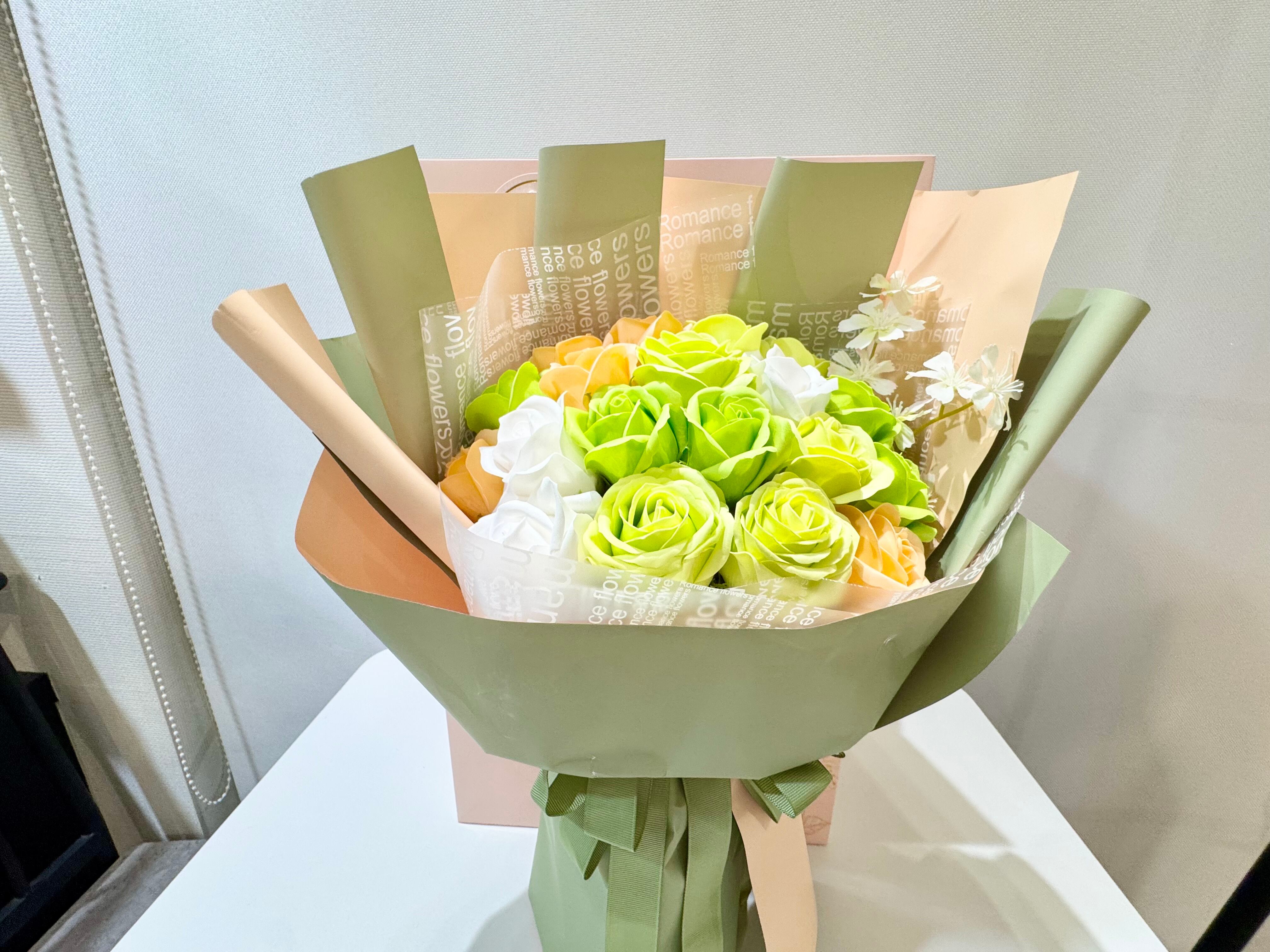 心を落ち着かせるグリーンローズで、癒しのひとときをお届けします。